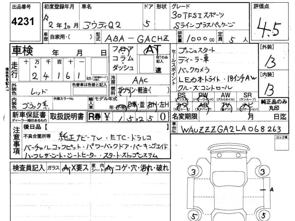 Оценка аукциона: 4.5, что гарантирует хорошее техническое и косметическое состояние кузова и салона.