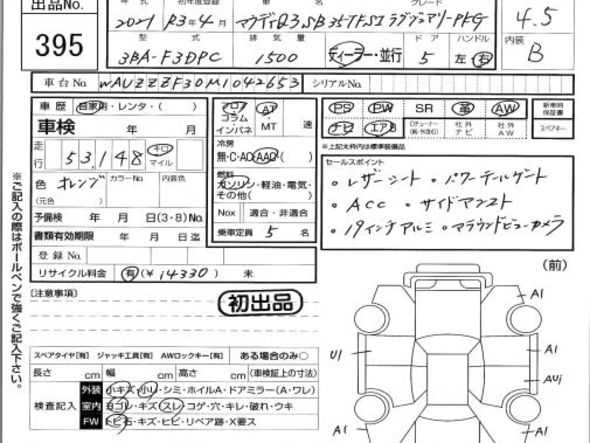 Оценка аукциона: 4.5, что гарантирует хорошее техническое и косметическое состояние кузова и салона.
