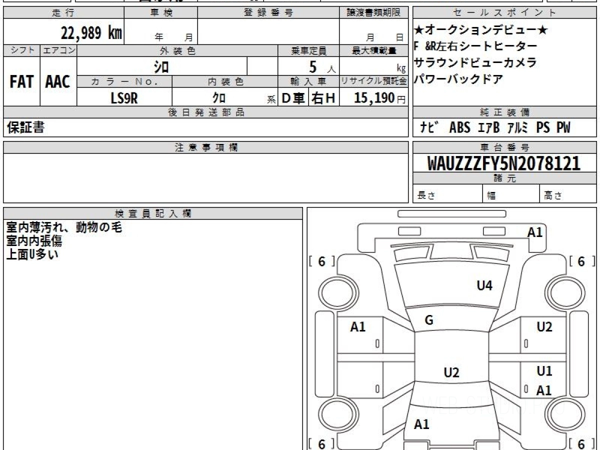 Оценка аукциона: 3.5, что гарантирует хорошее техническое и косметическое состояние кузова и салона.
