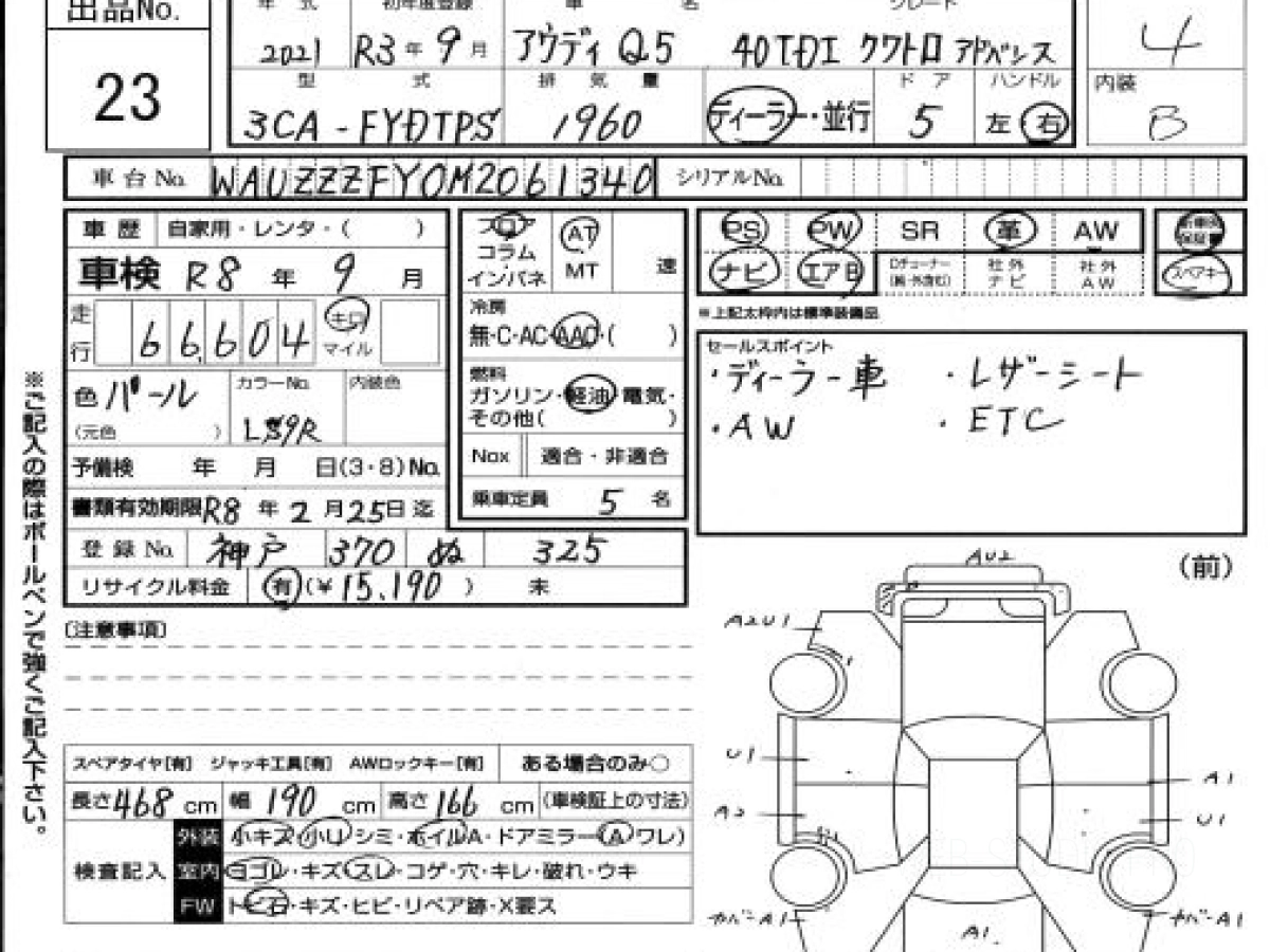 Купить AUDI Q5 2021 года выпуска можно под заказ с аукционов Японии во Владивостоке с доставкой в Москву или любой другой город России.