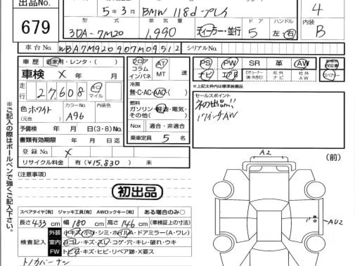 Оценка аукциона: 4, что гарантирует хорошее техническое и косметическое состояние кузова и салона.