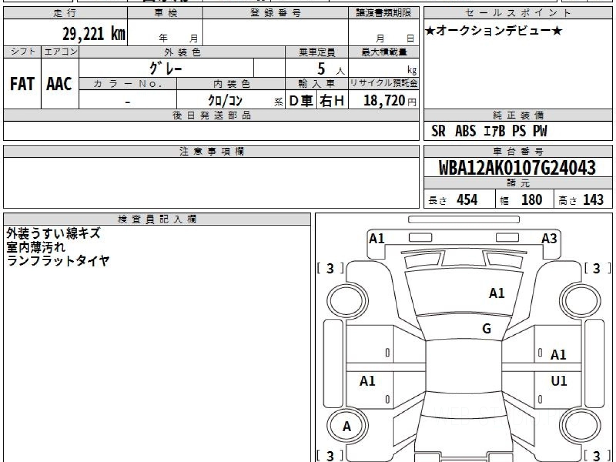 Оценка аукциона: 4.5, что гарантирует хорошее техническое и косметическое состояние кузова и салона.