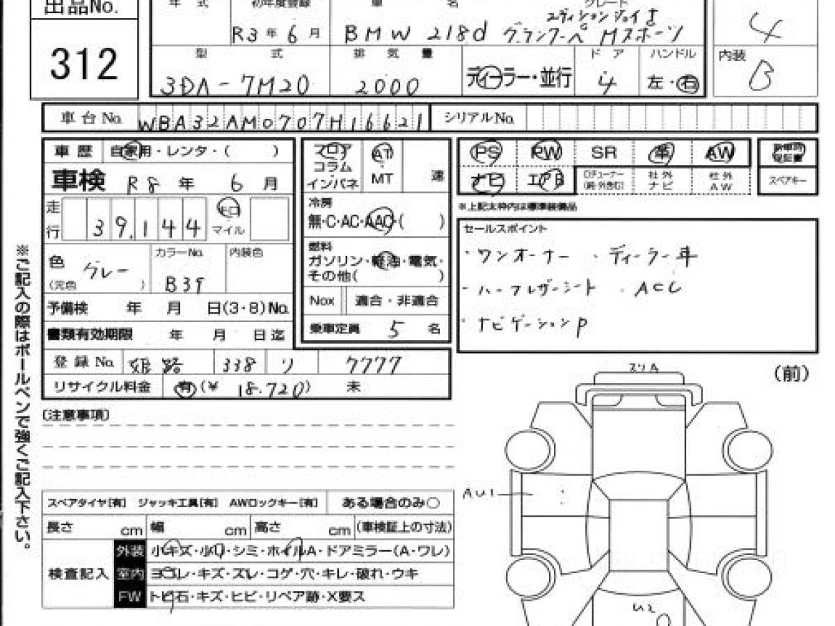 Оценка аукциона: 4, что гарантирует хорошее техническое и косметическое состояние кузова и салона.
