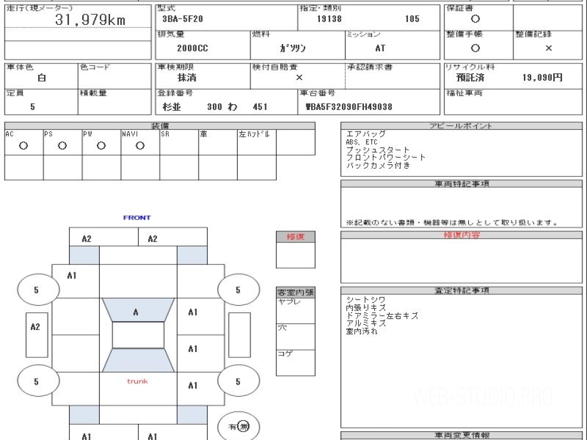 Оценка аукциона: 4, что гарантирует хорошее техническое и косметическое состояние кузова и салона.