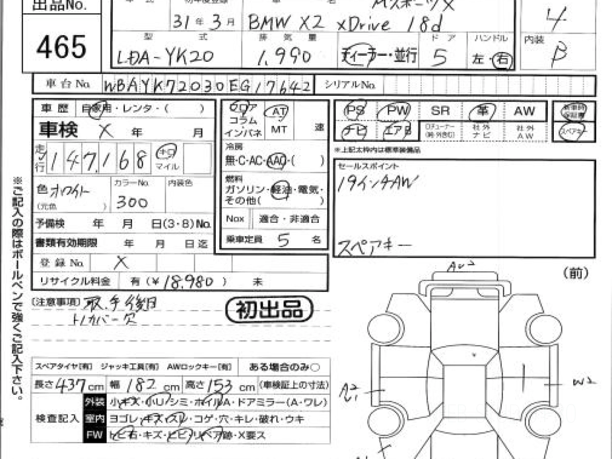 Купить BMW X2 2019 года выпуска можно под заказ с аукционов Японии во Владивостоке с доставкой в Москву или любой другой город России.