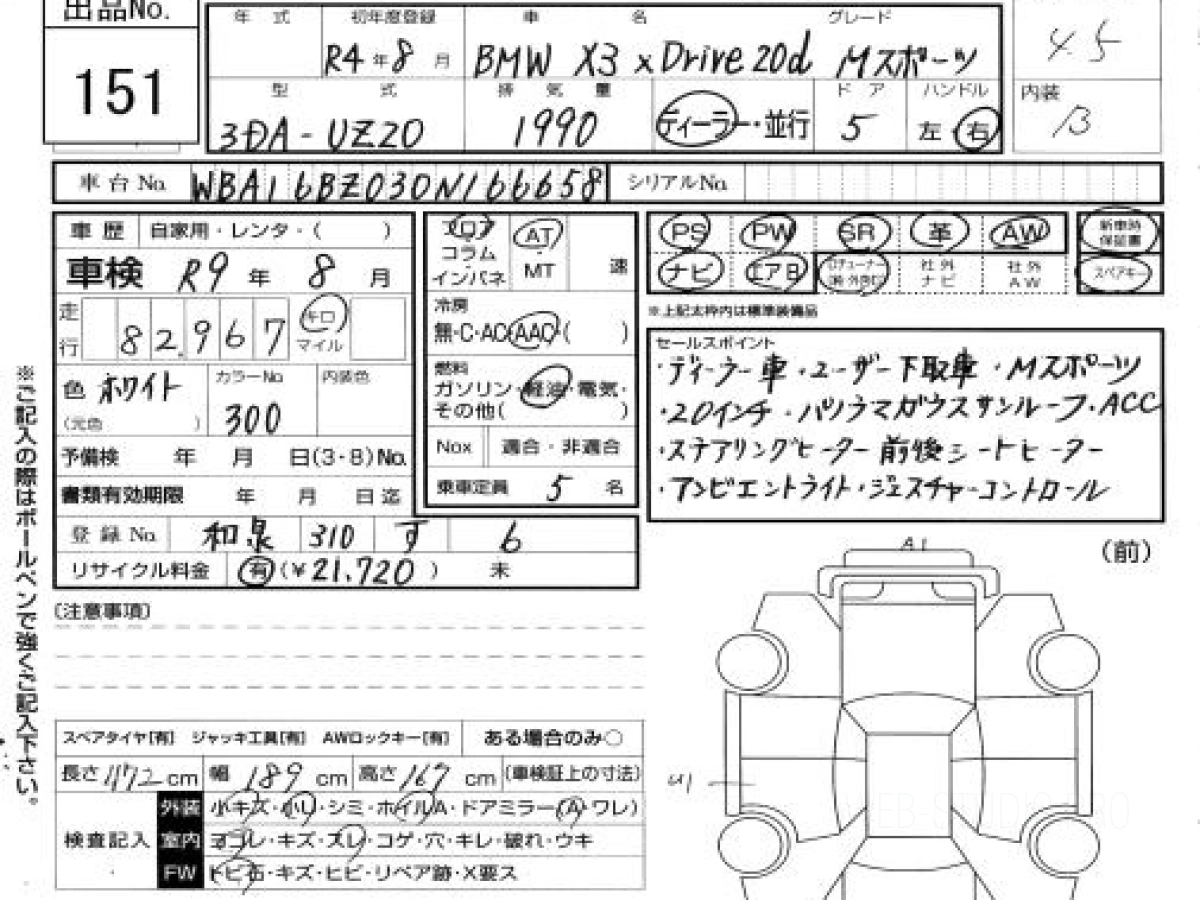Стоимость BMW X3 UZ20 2022 определяется исходя из состояния и комплектации автомобиля. Указанная цена учитывает таможенные платежи и затраты на доставку во Владивосток.