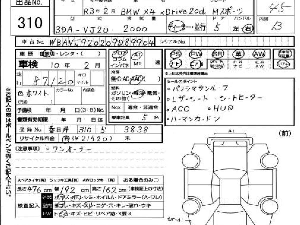 Купить BMW X4 2021 года выпуска можно под заказ с аукционов Японии во Владивостоке с доставкой в Москву или любой другой город России.