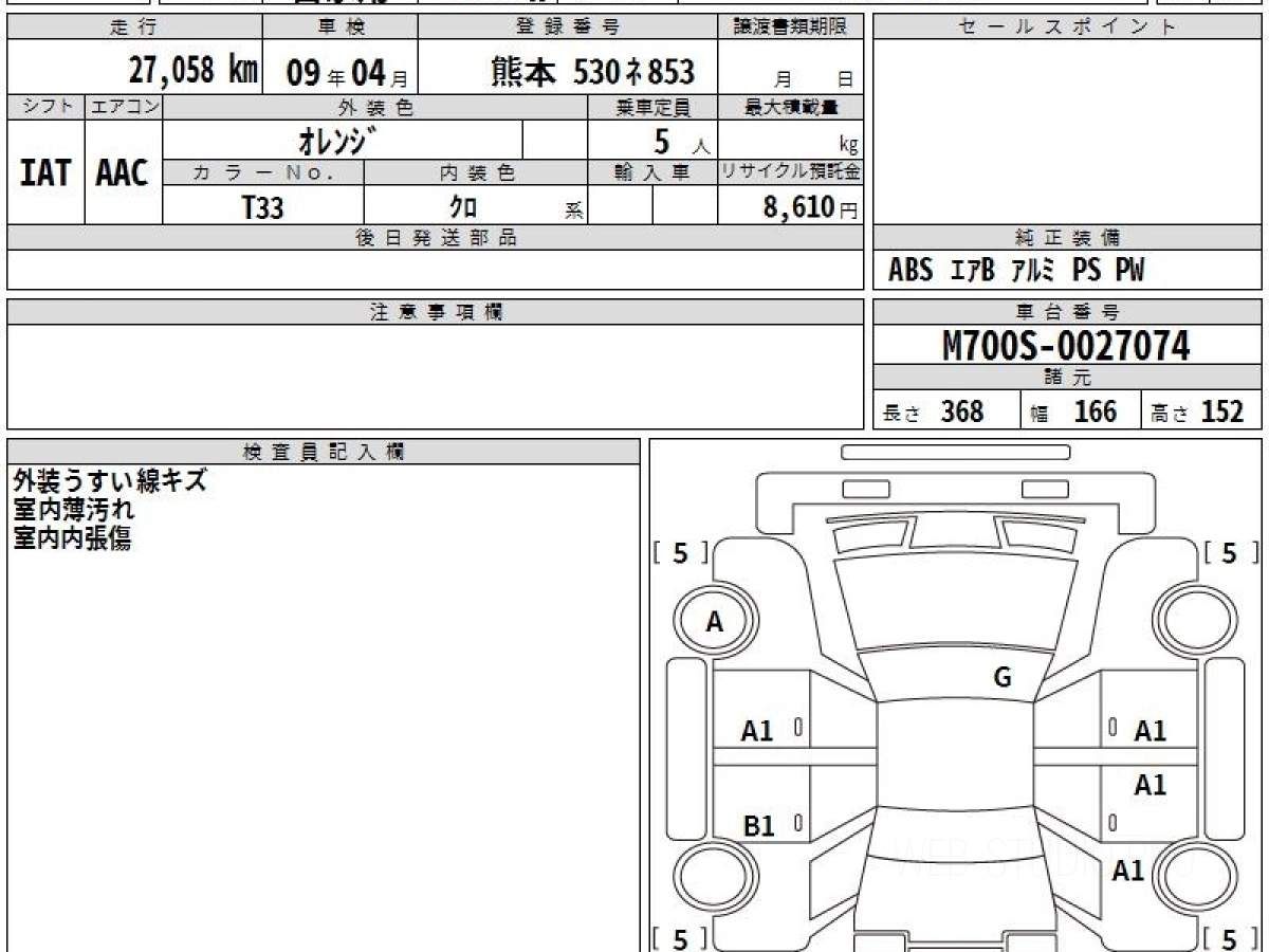 Номер кузова: M700S.