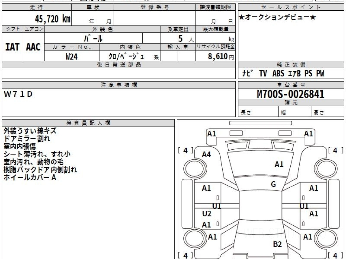 Номер кузова: M700S.