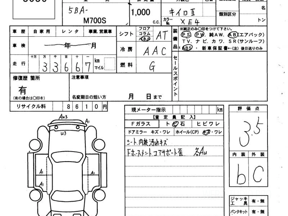 Оценка аукциона: 3.5, что гарантирует хорошее техническое и косметическое состояние кузова и салона.