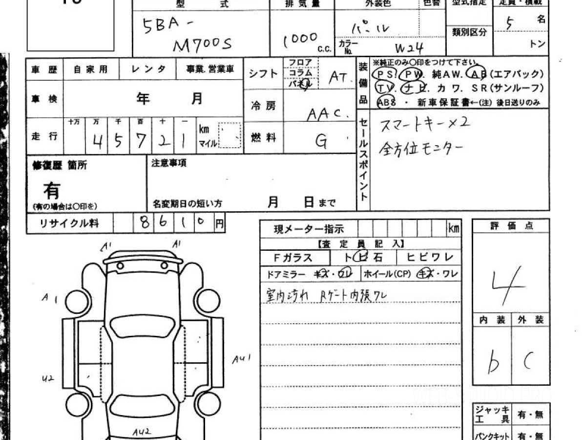 Оценка аукциона: 4, что гарантирует хорошее техническое и косметическое состояние кузова и салона.