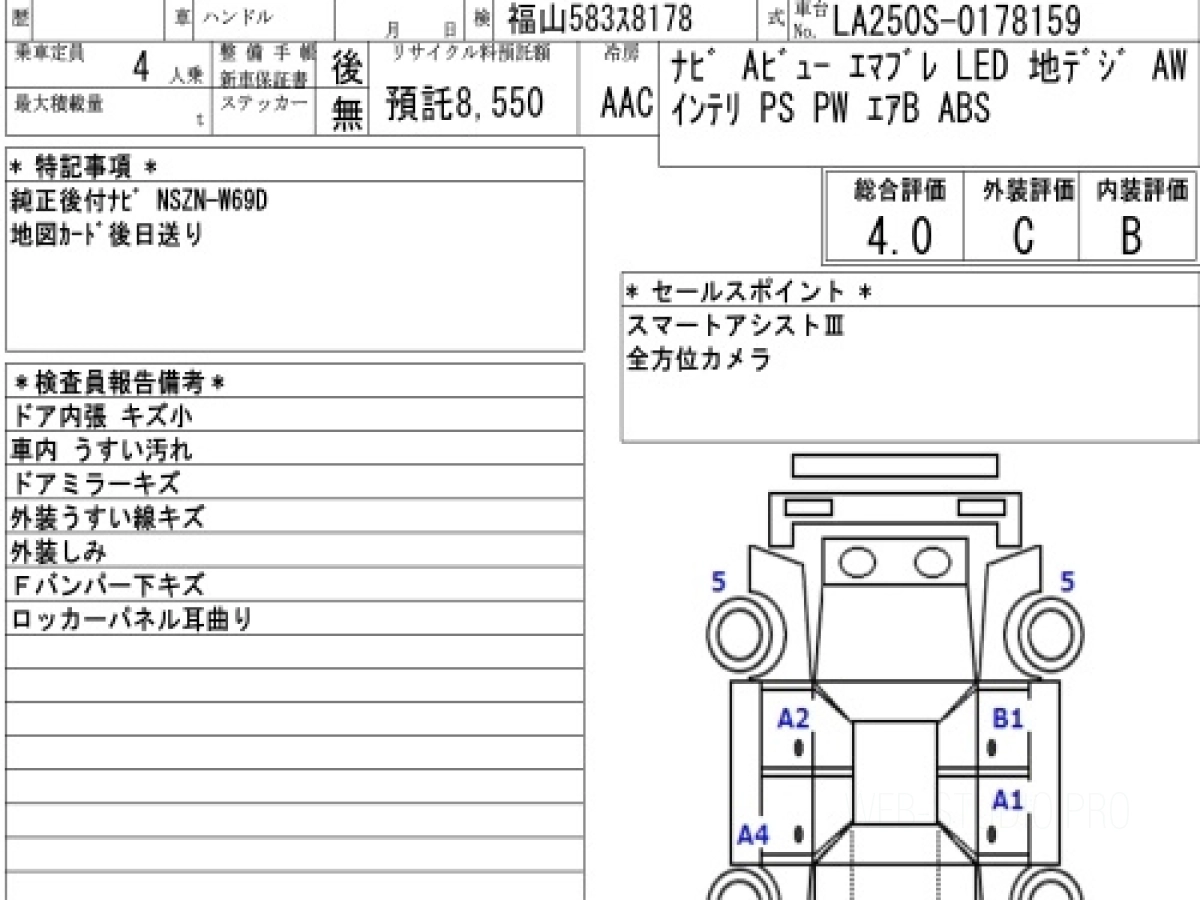 Номер кузова: LA250S.