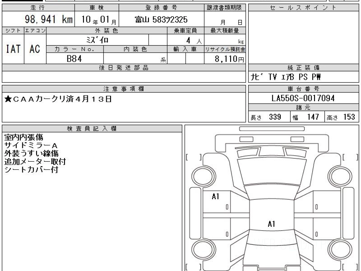 Оценка аукциона: 4.5, что гарантирует хорошее техническое и косметическое состояние кузова и салона.