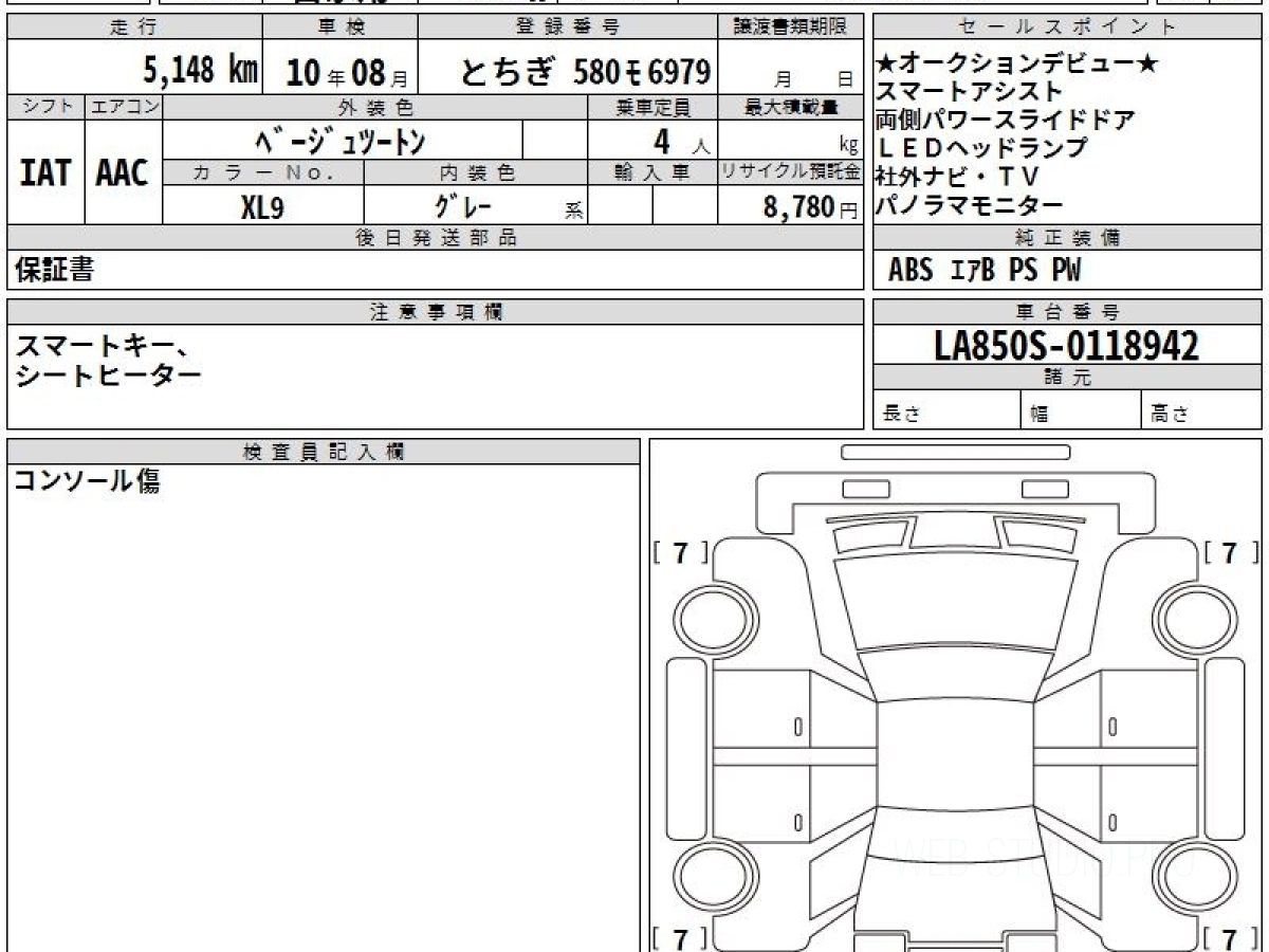 Оценка аукциона: 5, что гарантирует хорошее техническое и косметическое состояние кузова и салона.