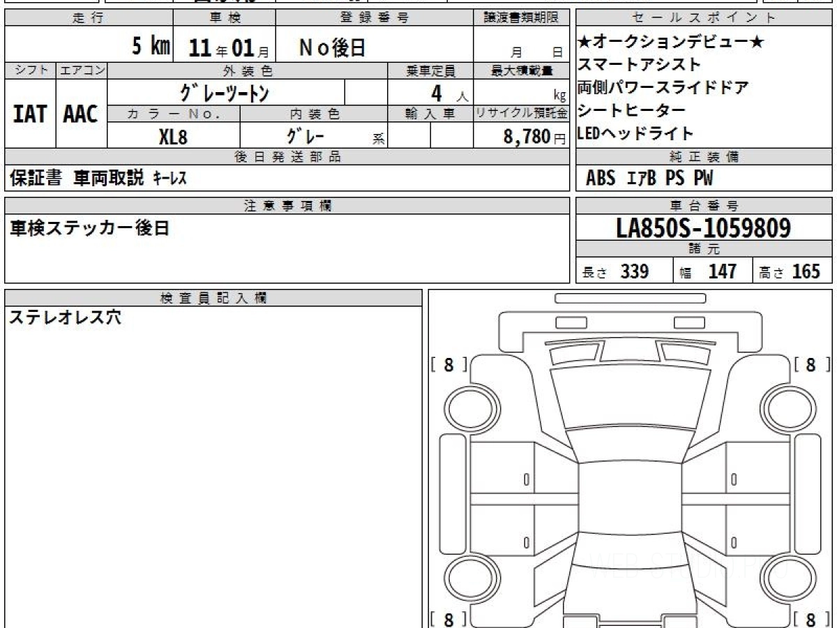 Номер кузова: LA850S.