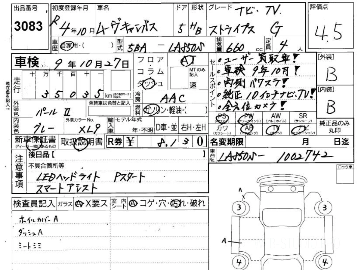 Оценка аукциона: 4.5, что гарантирует хорошее техническое и косметическое состояние кузова и салона.