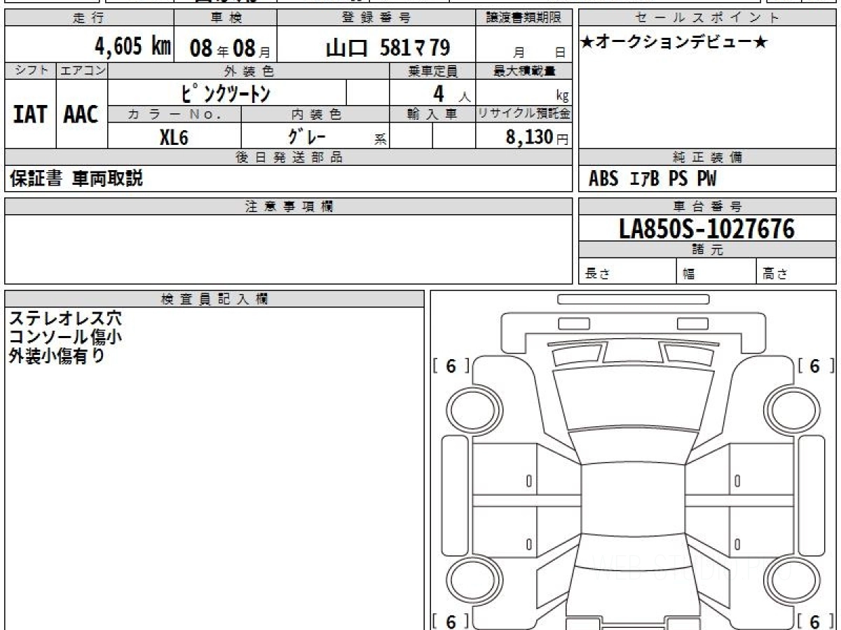 Оценка аукциона: 5, что гарантирует хорошее техническое и косметическое состояние кузова и салона.