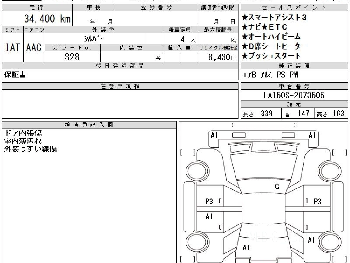 Номер кузова: LA150S.