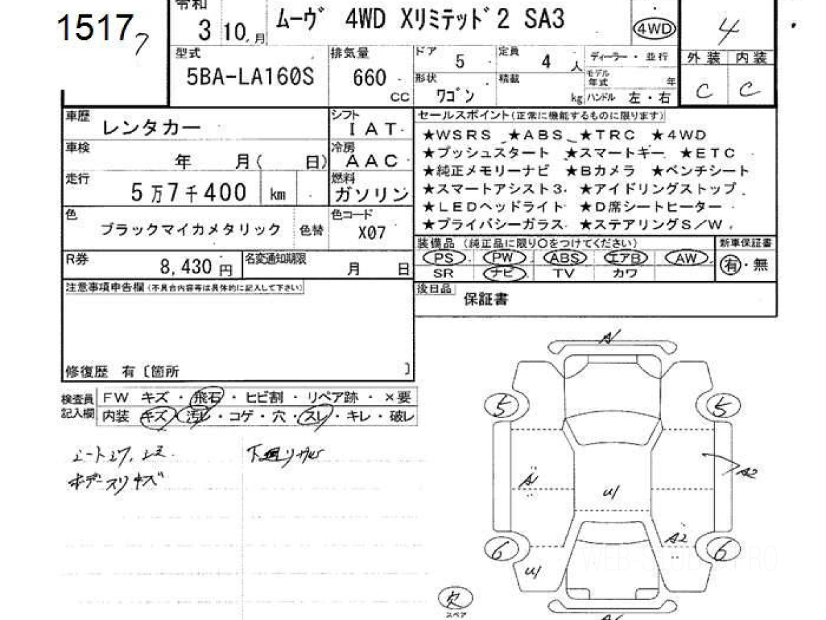 Оценка аукциона: 4, что гарантирует хорошее техническое и косметическое состояние кузова и салона.