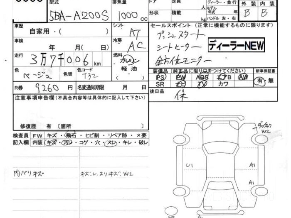Номер кузова: A200S.