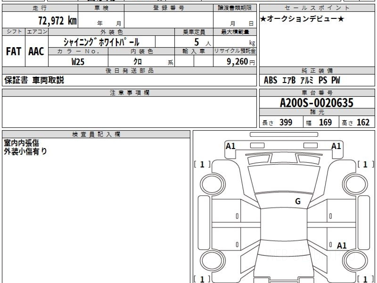 Номер кузова: A200S.