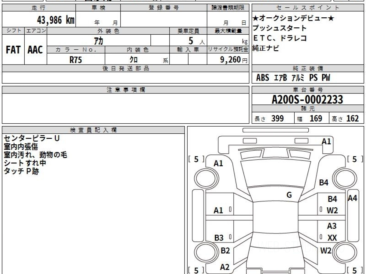 Оценка аукциона: RA, что гарантирует хорошее техническое и косметическое состояние кузова и салона.