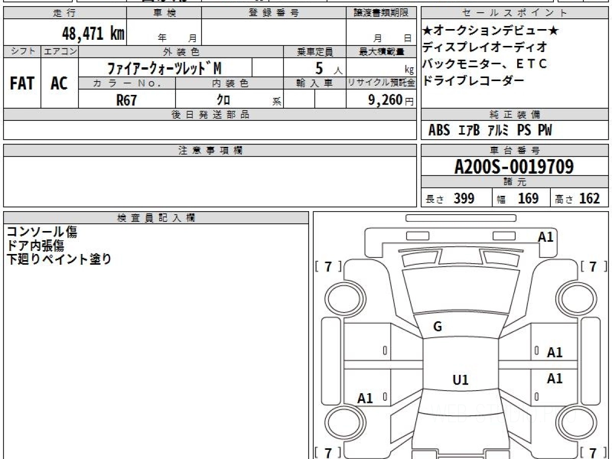 Номер кузова: A200S.