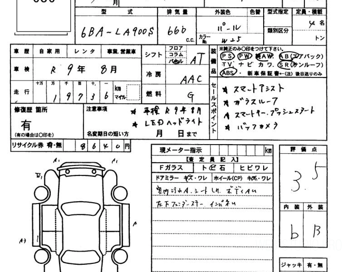 Оценка аукциона: 3.5, что гарантирует хорошее техническое и косметическое состояние кузова и салона.