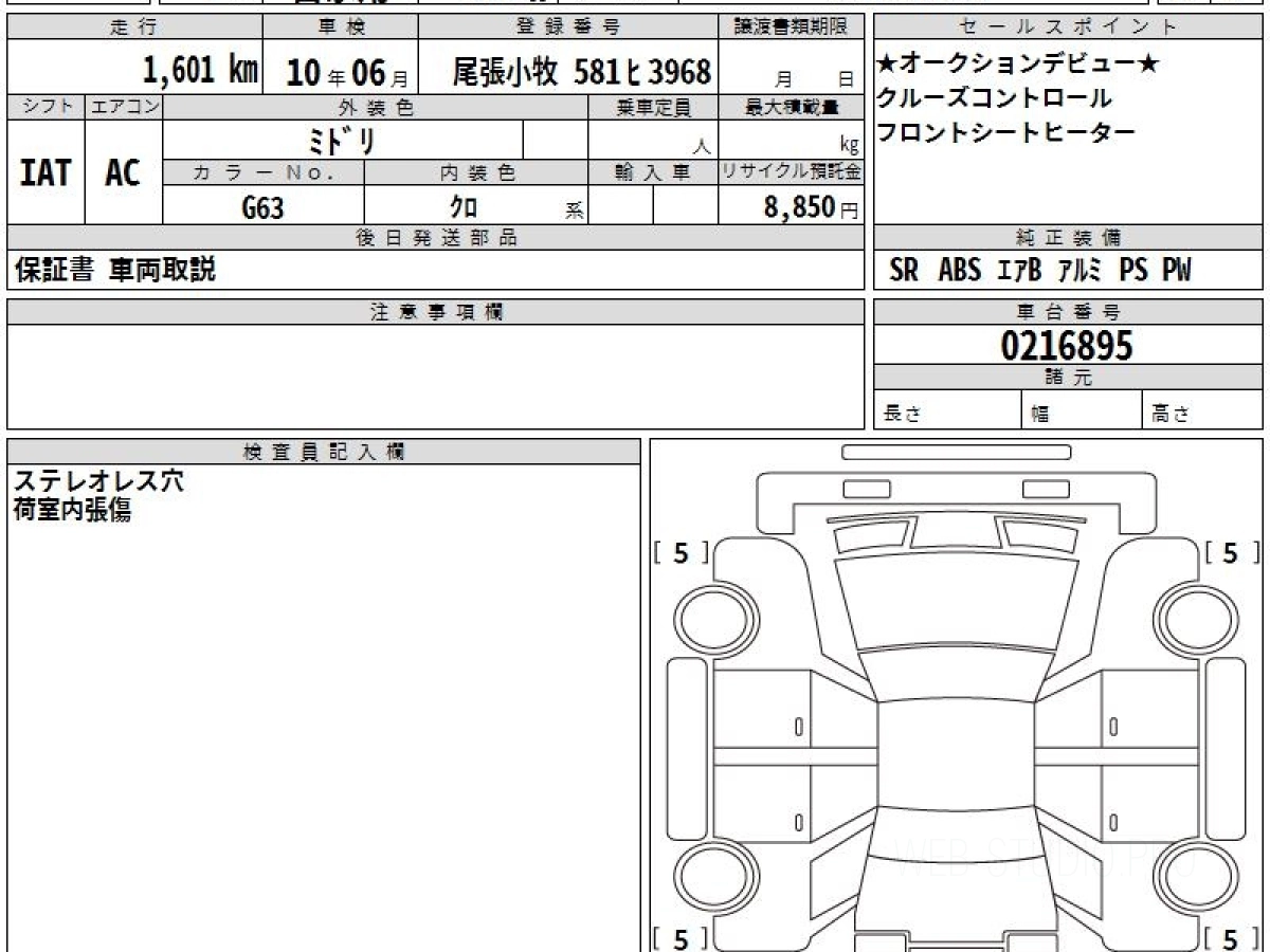 Оценка аукциона: 5, что гарантирует хорошее техническое и косметическое состояние кузова и салона.