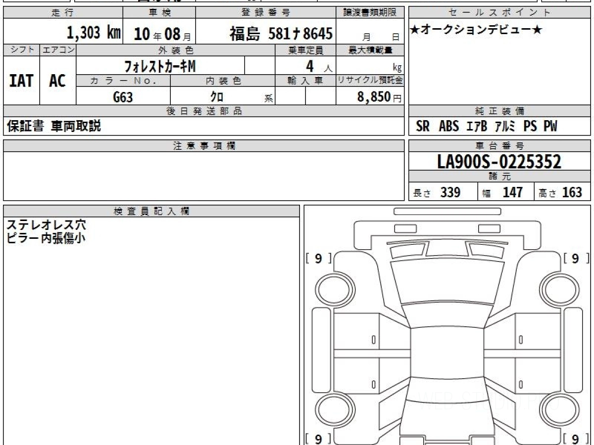 Оценка аукциона: 6, что гарантирует хорошее техническое и косметическое состояние кузова и салона.
