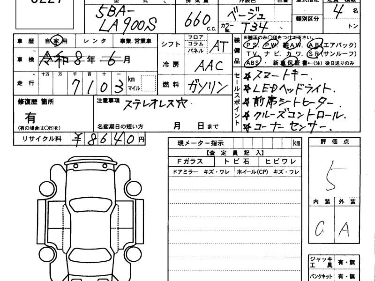 Оценка аукциона: 5, что гарантирует хорошее техническое и косметическое состояние кузова и салона.