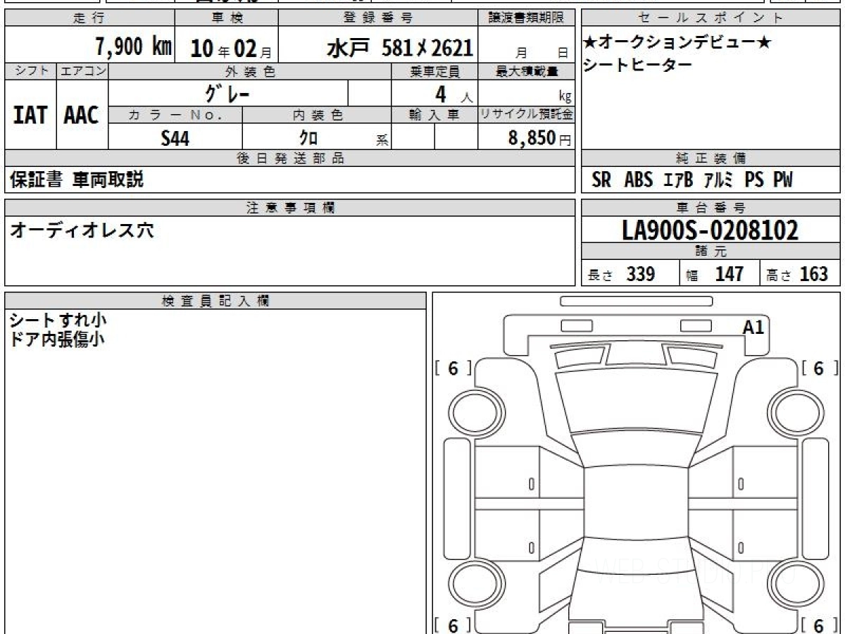 Номер кузова: LA900S.