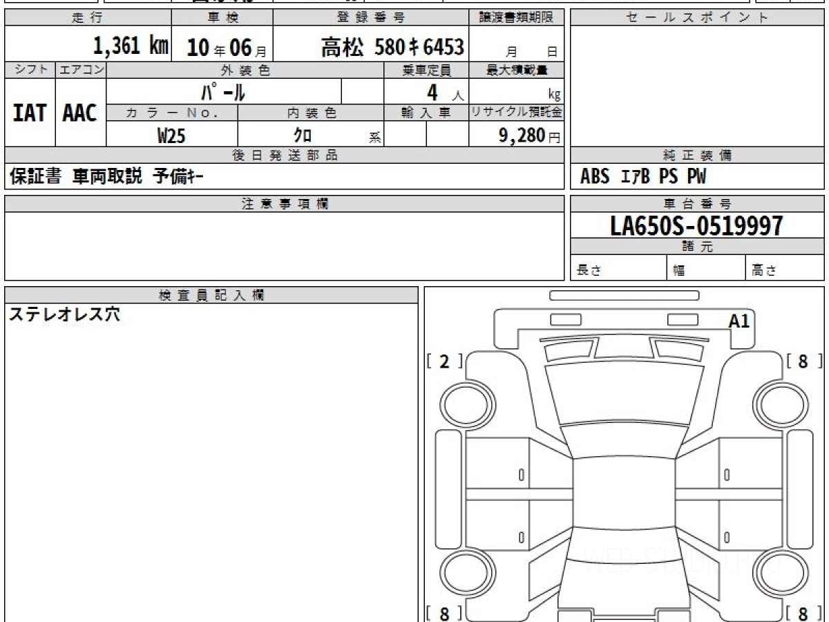 Номер кузова: LA650S.