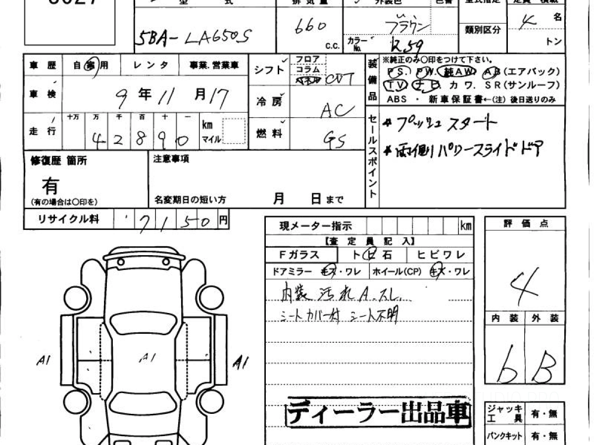 Оценка аукциона: 4, что гарантирует хорошее техническое и косметическое состояние кузова и салона.