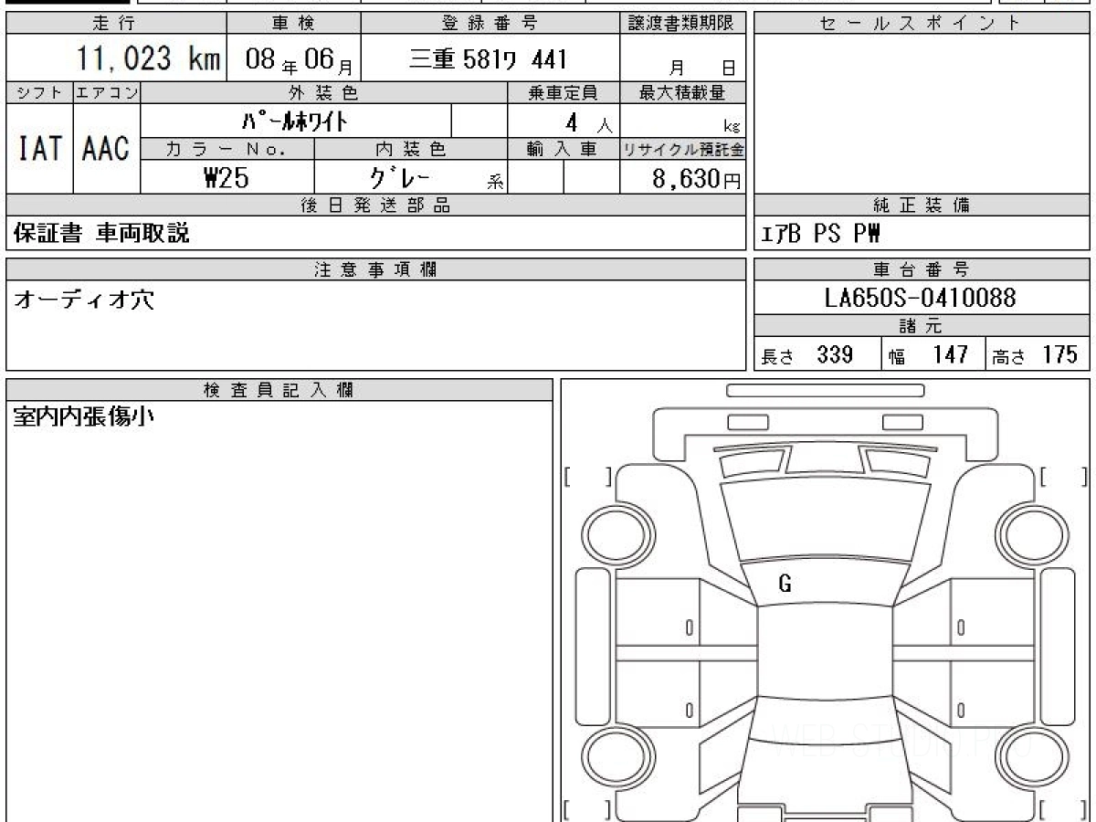 Оценка аукциона: 6, что гарантирует хорошее техническое и косметическое состояние кузова и салона.
