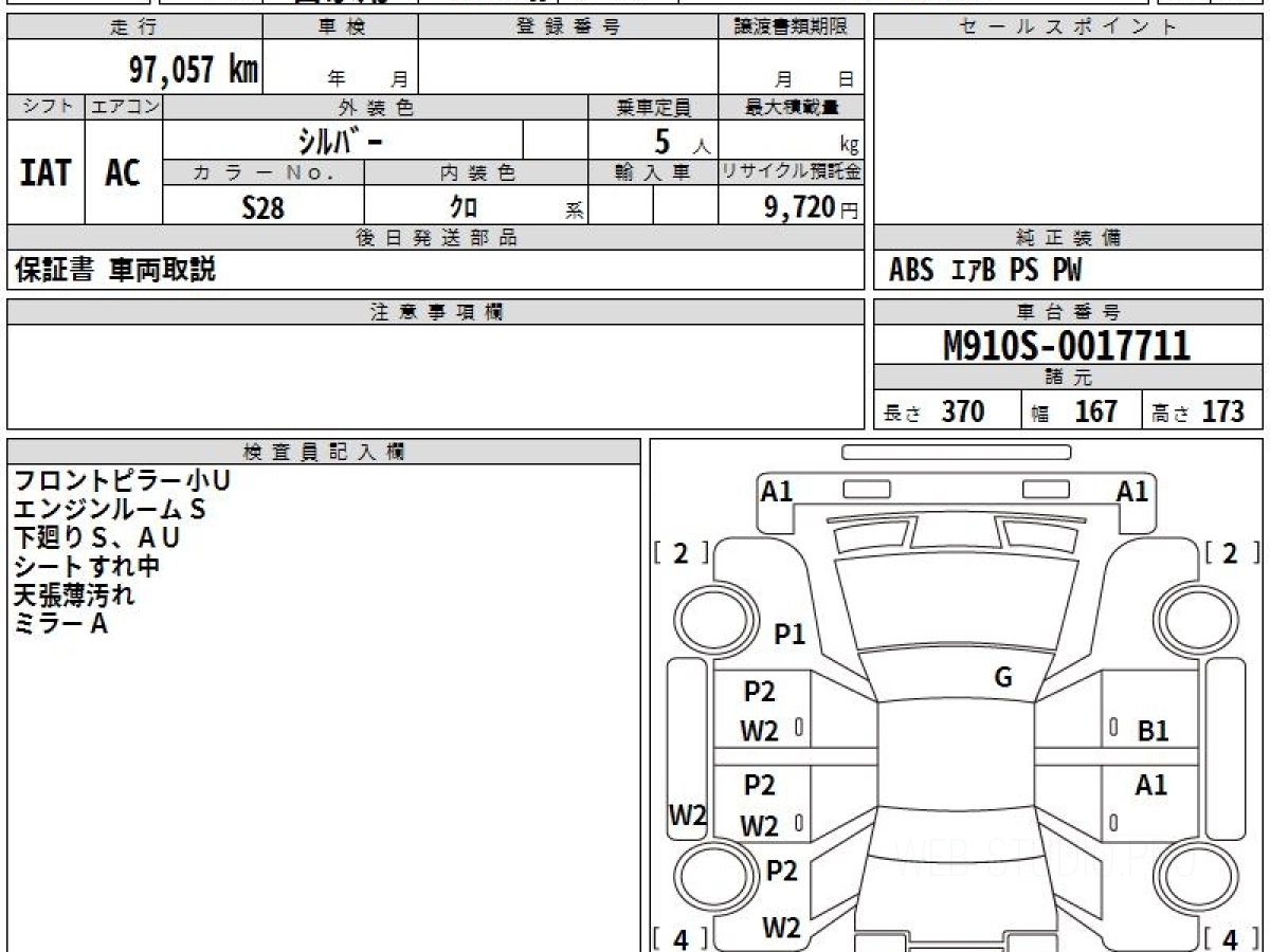 Номер кузова: M910S.