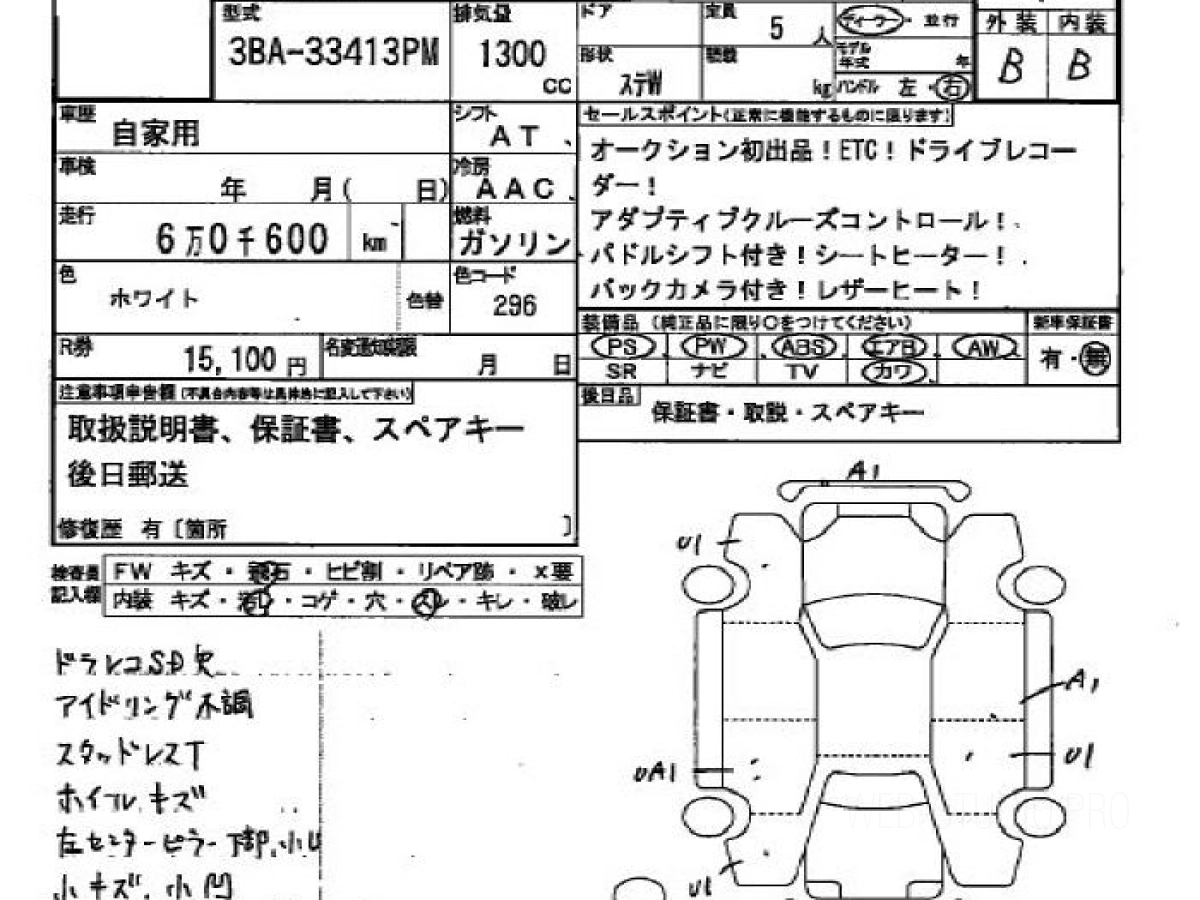 Оценка аукциона: 4, что гарантирует хорошее техническое и косметическое состояние кузова и салона.