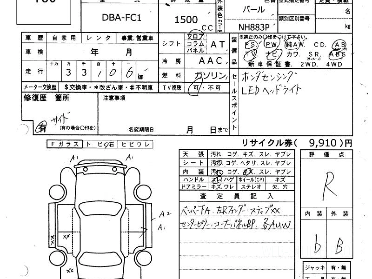 Оценка аукциона: R, что гарантирует хорошее техническое и косметическое состояние кузова и салона.