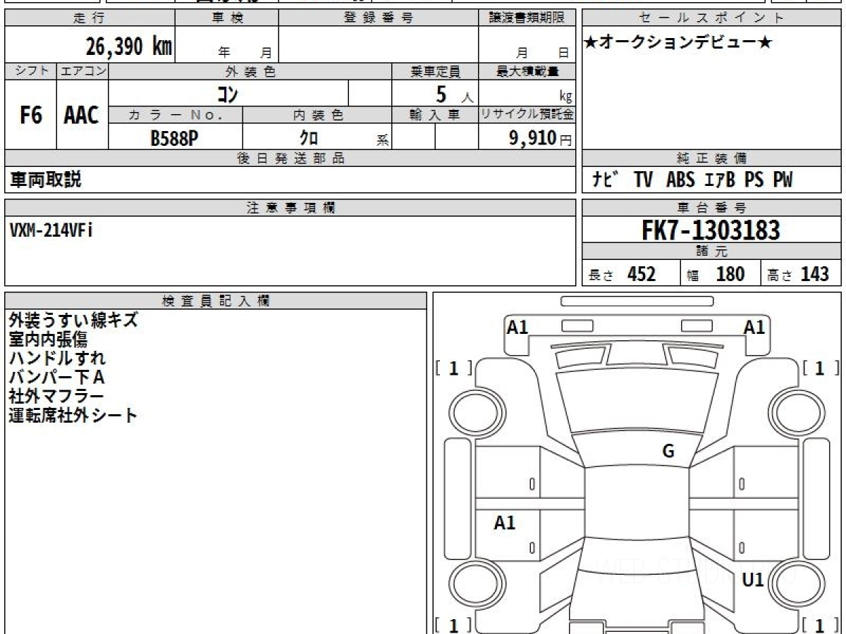 Оценка аукциона: 4.5, что гарантирует хорошее техническое и косметическое состояние кузова и салона.