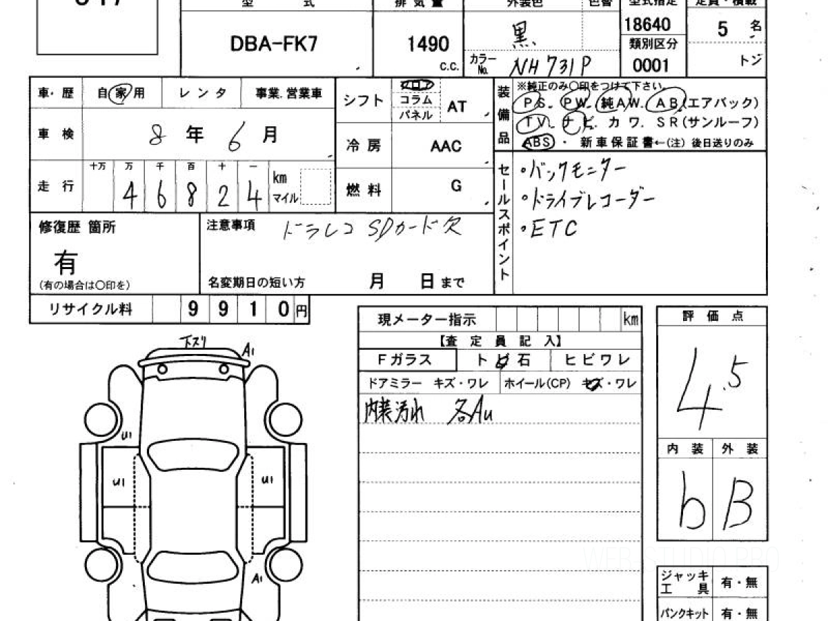 Оценка аукциона: 4.5, что гарантирует хорошее техническое и косметическое состояние кузова и салона.