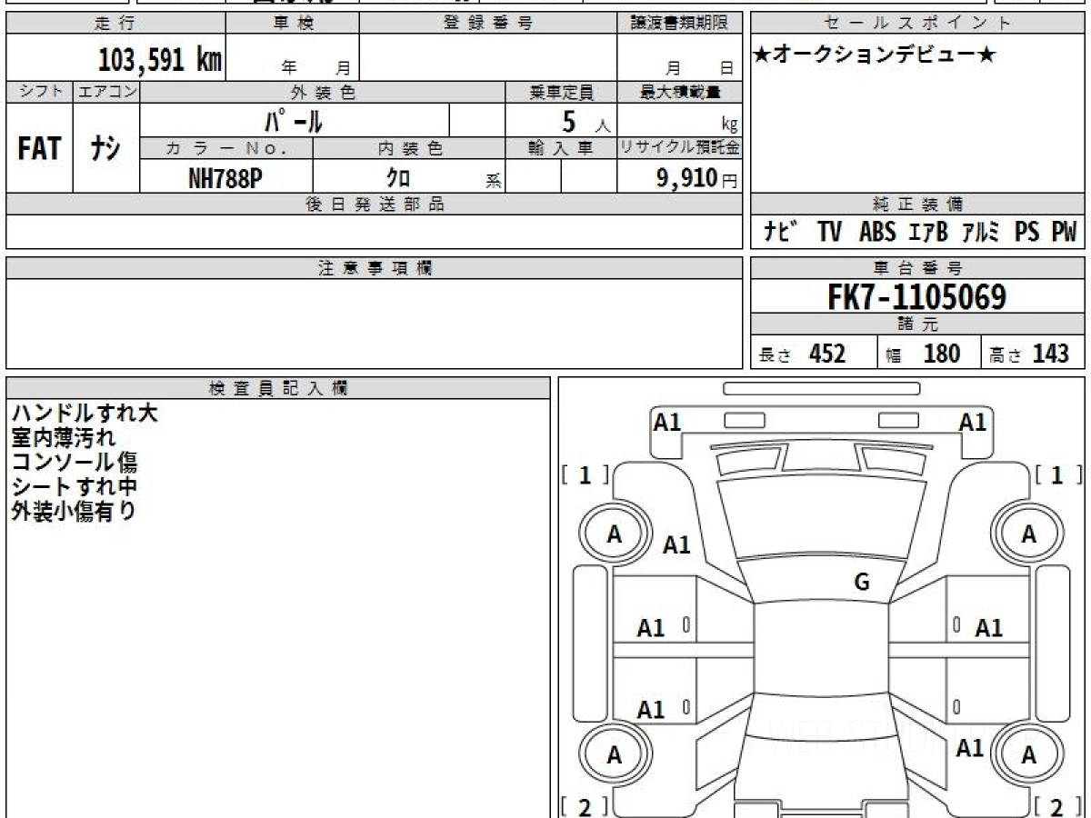 Оценка аукциона: 4, что гарантирует хорошее техническое и косметическое состояние кузова и салона.