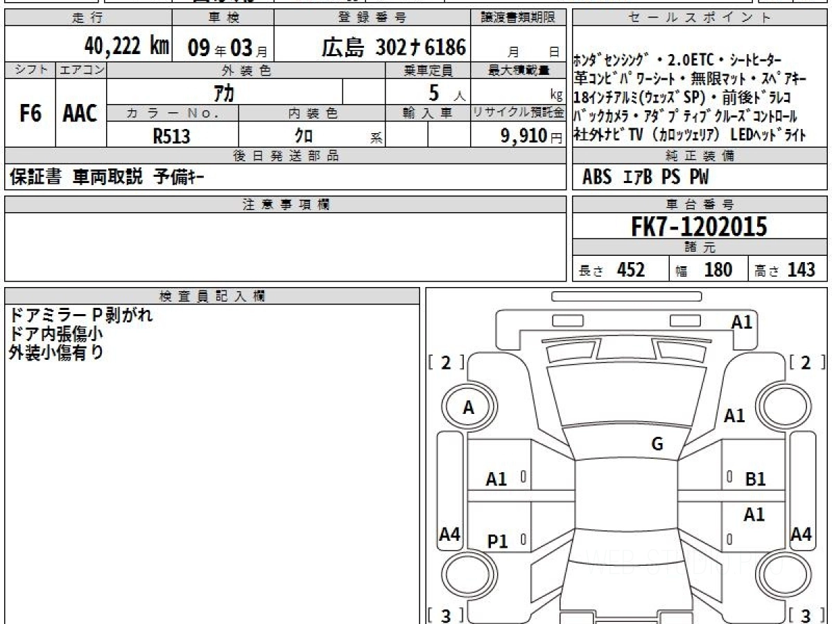 Оценка аукциона: 4, что гарантирует хорошее техническое и косметическое состояние кузова и салона.