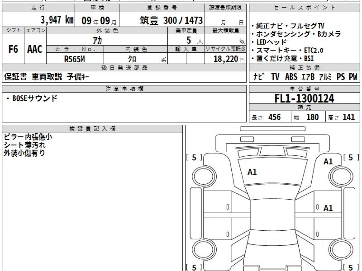 Оценка аукциона: 5, что гарантирует хорошее техническое и косметическое состояние кузова и салона.