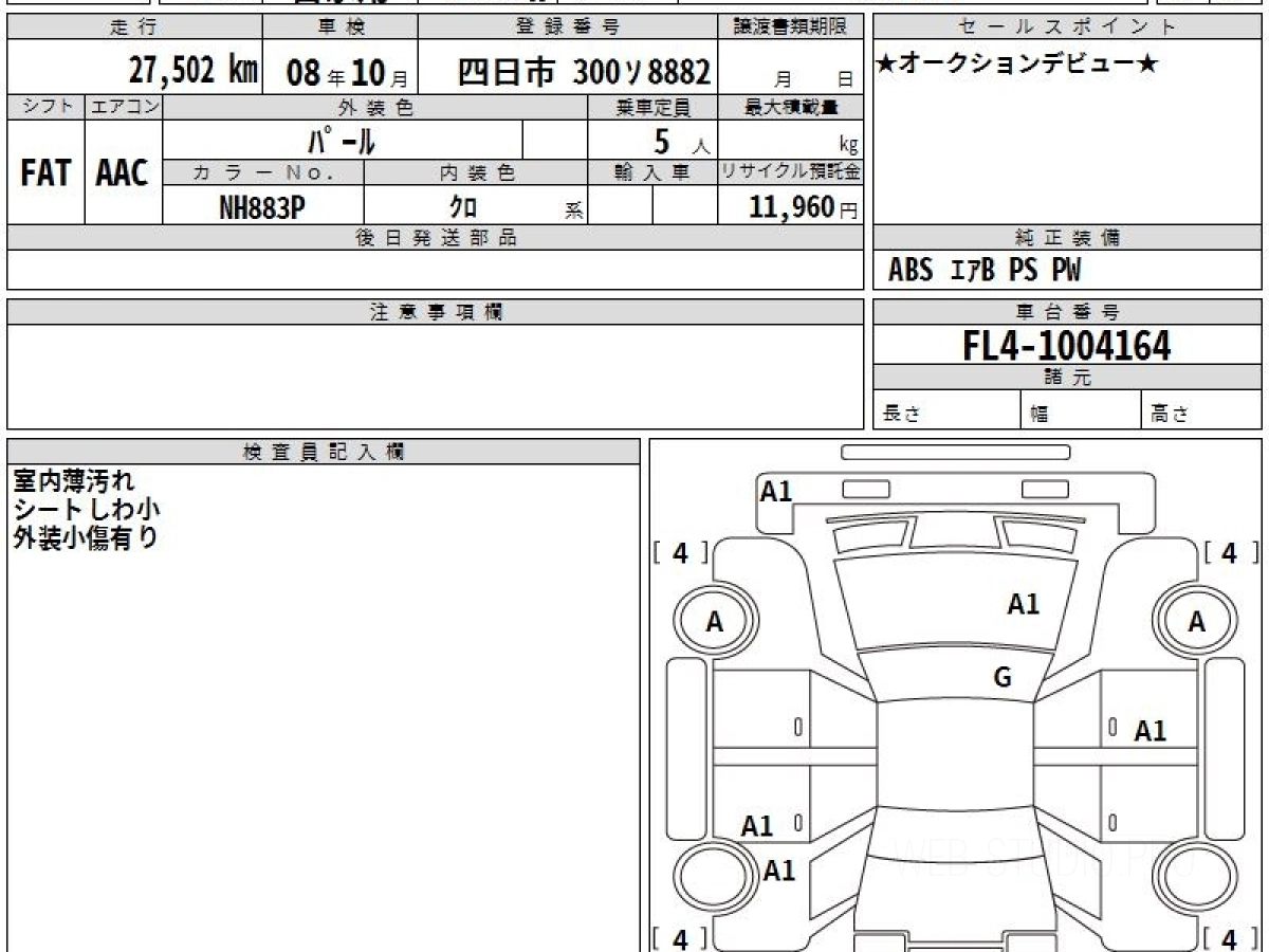 Оценка аукциона: 4.5, что гарантирует хорошее техническое и косметическое состояние кузова и салона.