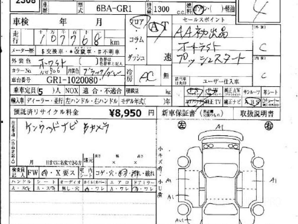 Оценка аукциона: 4, что гарантирует хорошее техническое и косметическое состояние кузова и салона.
