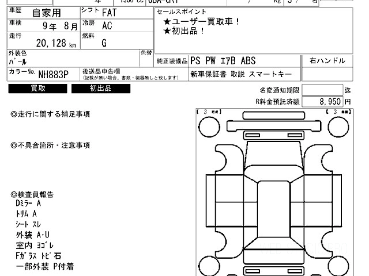 Оценка аукциона: 4.5, что гарантирует хорошее техническое и косметическое состояние кузова и салона.