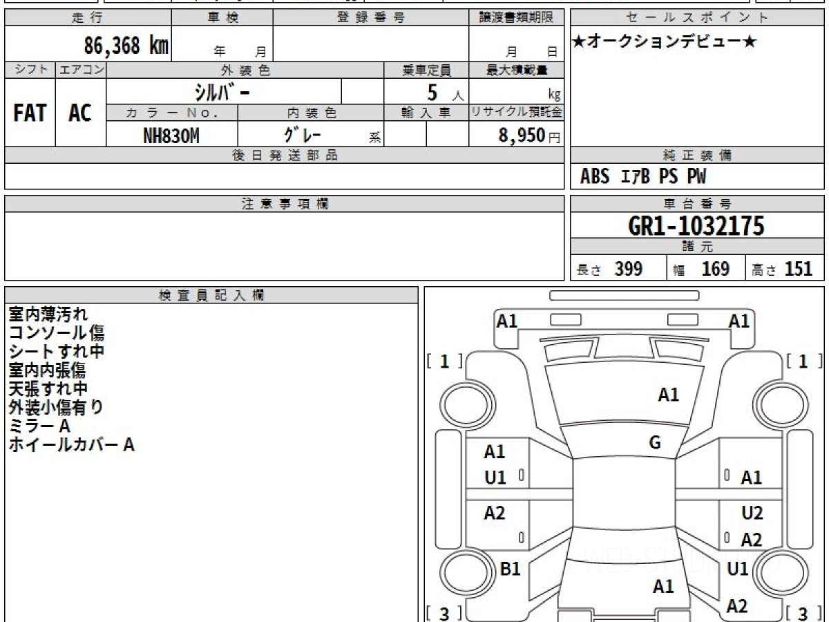 Оценка аукциона: 4, что гарантирует хорошее техническое и косметическое состояние кузова и салона.