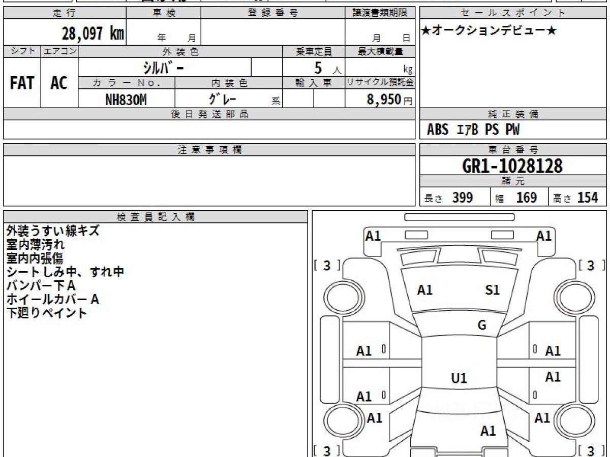 Оценка аукциона: 4, что гарантирует хорошее техническое и косметическое состояние кузова и салона.