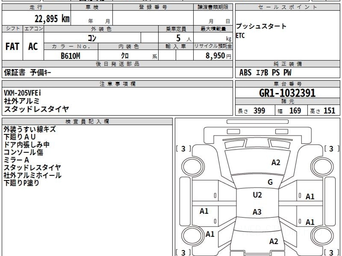 Оценка аукциона: 4, что гарантирует хорошее техническое и косметическое состояние кузова и салона.