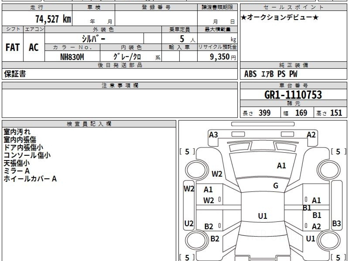 Оценка аукциона: 3.5, что гарантирует хорошее техническое и косметическое состояние кузова и салона.